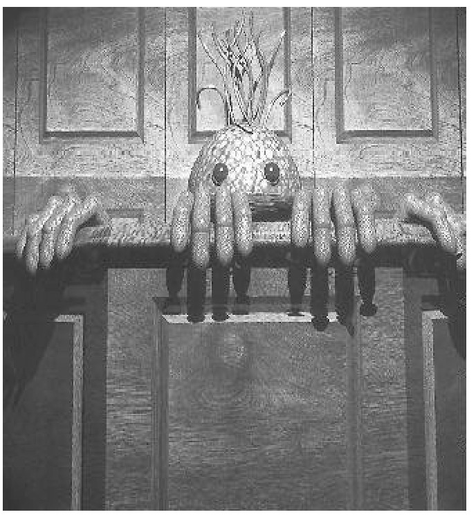 正在这时,吊灯上的朱皮特人发现了他的两个哥哥,松开一只触手向他们打招呼。教授凹陷的眼睛贪婪地盯着他们,又多了两个标本!待教授跑近朱皮特人时,丹尼忽地把灯关掉,然后引着三个朱皮特人向前猛冲。