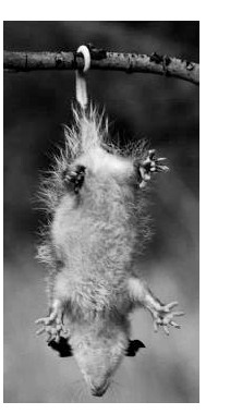 负鼠在躲避天敌时会装死,它们在即将被擒时,会立即躺倒在地,张开嘴巴,伸出舌头,紧闭双眼,停止呼吸和心跳,甚至由肛门旁的臭腺排出一种恶臭的黄色液体,让对方以为它们已经腐烂发臭了。