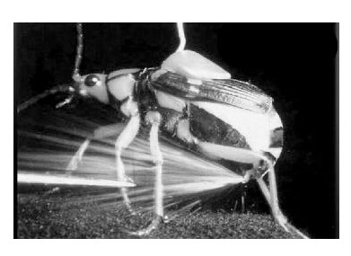 射炮步甲在腹部末端有一个小囊,能喷出有毒的液体,用以防范天敌。射炮步甲将液体在极高的温度下放射出,炽热的液体一经接触空气就汽化,射液时发出“嘭”的一声,更使敌人吃惊。这些声响和毒液足以吓退不少猎食者。