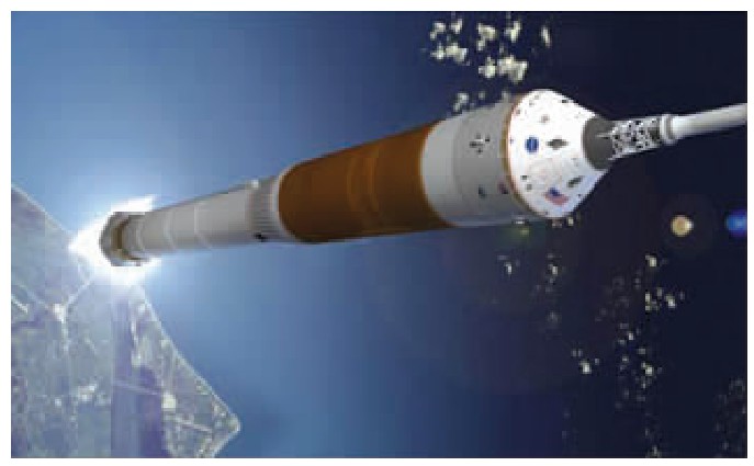 这种全新的超大运载火箭,它的运载能力高达125吨!宇航员飞行舱将置于火箭的顶端,这样不但可使宇航员远离喷火的火箭发动机,而且还可避免因火箭隔热材料的脱落而发生危险。