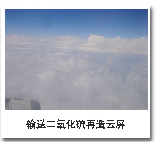 给云层增白,也就是让云层变厚。也有科学家提出设想:如果在同温层,让雨滴与二氧化硫发生反应并形成云层,最终在地球与阳光之间打造一道屏障。 再造云层的科学原理:人类可以利用高空飞行喷气机、火炮或者热气球将二氧化硫送入同温层。这个方法不但可行,而且比向天空发射带水导弹要节省成本。