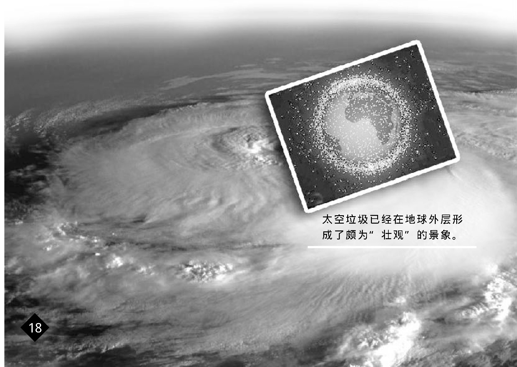 一般来说,太空垃圾在大气阻力的影响下会逐渐陨落,但是如果它的轨道很高,在1 000千米以上,大气阻力很小,那它能在轨道上存留数万年甚至数百万年。而且,目前大多数太空垃圾都处于比较高的高度上。近5 0年来,空间碎片总数已经超过4 000万个,总质量已达数百万千克,通过地面望远镜和雷达能观测到的空间碎片平均每年增加2 0 0个,总数已经超过10 000个。如今太空已经成了不折不扣的垃圾场了。