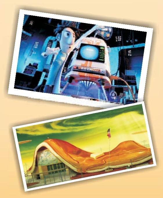 弗林特的好朋友,美艳傲慢又颇具智慧的小镇天气预报员萨姆·斯帕克斯,希望能帮助弗林特摆脱掉这个不切实际的念头。不过谁都没有想到,弗林特居然成功了!彩色的云朵载着无数美食飞来——肉丸子、烤乳猪、汉堡、意大利面、冰激凌从天而降!