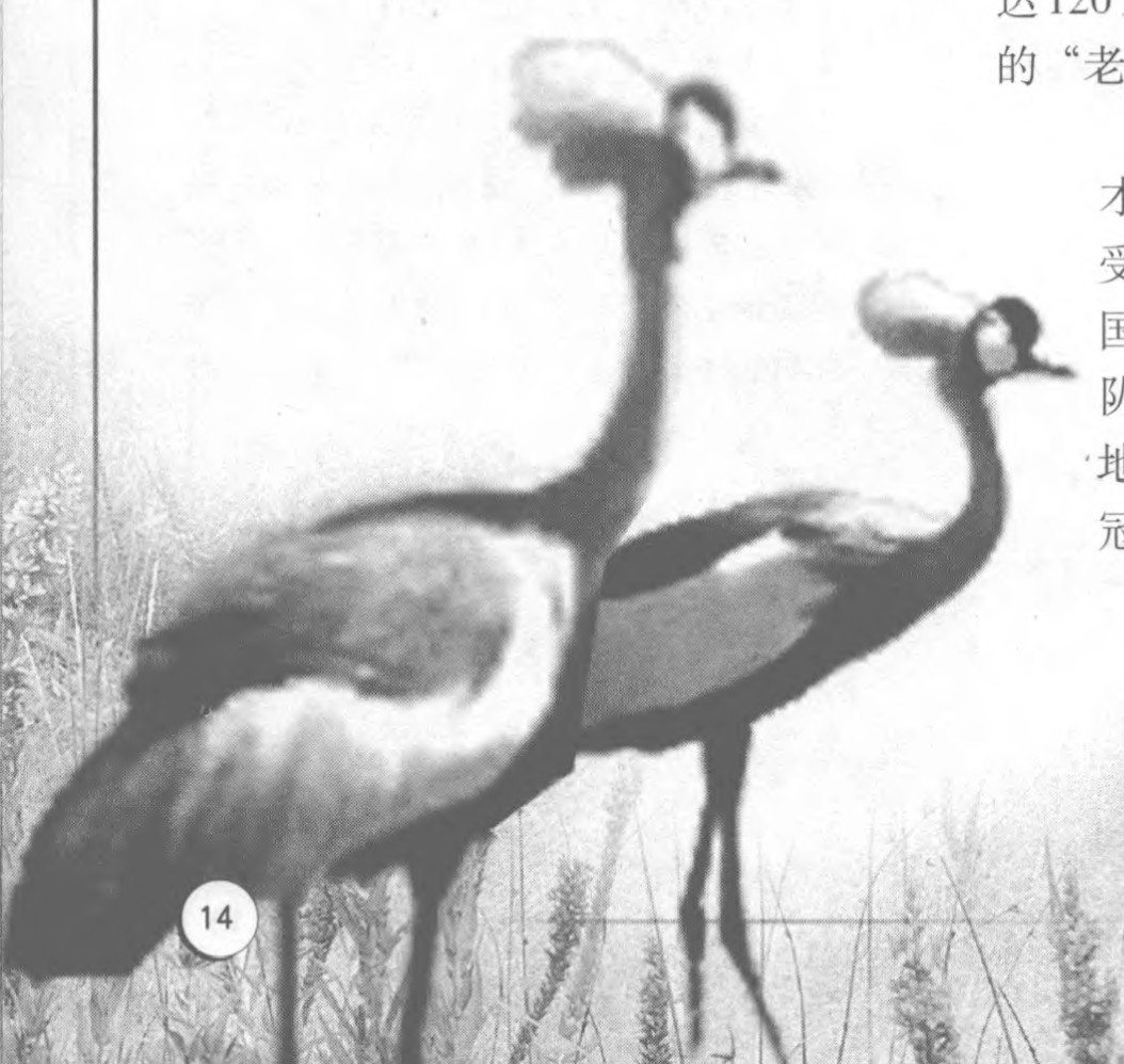 在赤道高原国家乌干达东部边境,有一个由我国援建的大型农场——奇巴农场。农场四周是茫茫的原始森林和绿油油的草原,那里的野鸟特别多,其中一种高腿长颈、头生羽冠、体态优雅的鸟儿最引人注目,它们常常飞到居民院子里觅食、戏耍,即使有人走近时也不惊慌。