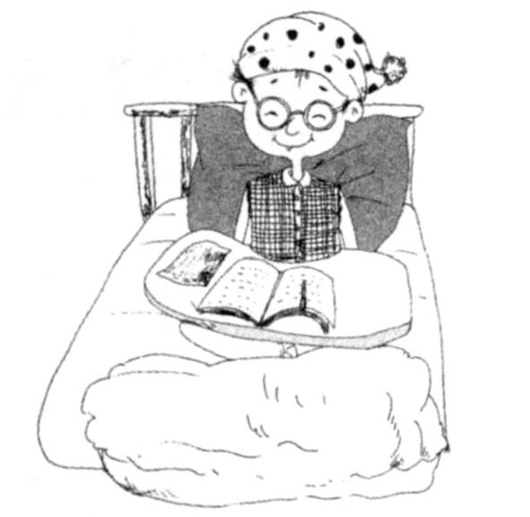 冬天的时候,坐在桌前看书常常觉得很冷,躺到床上去看又怕对眼睛不好,影响视力。我可不想成为小“四眼龙”。