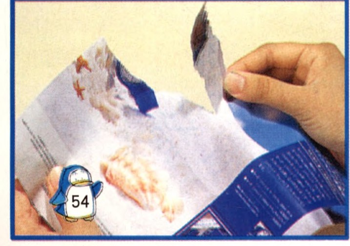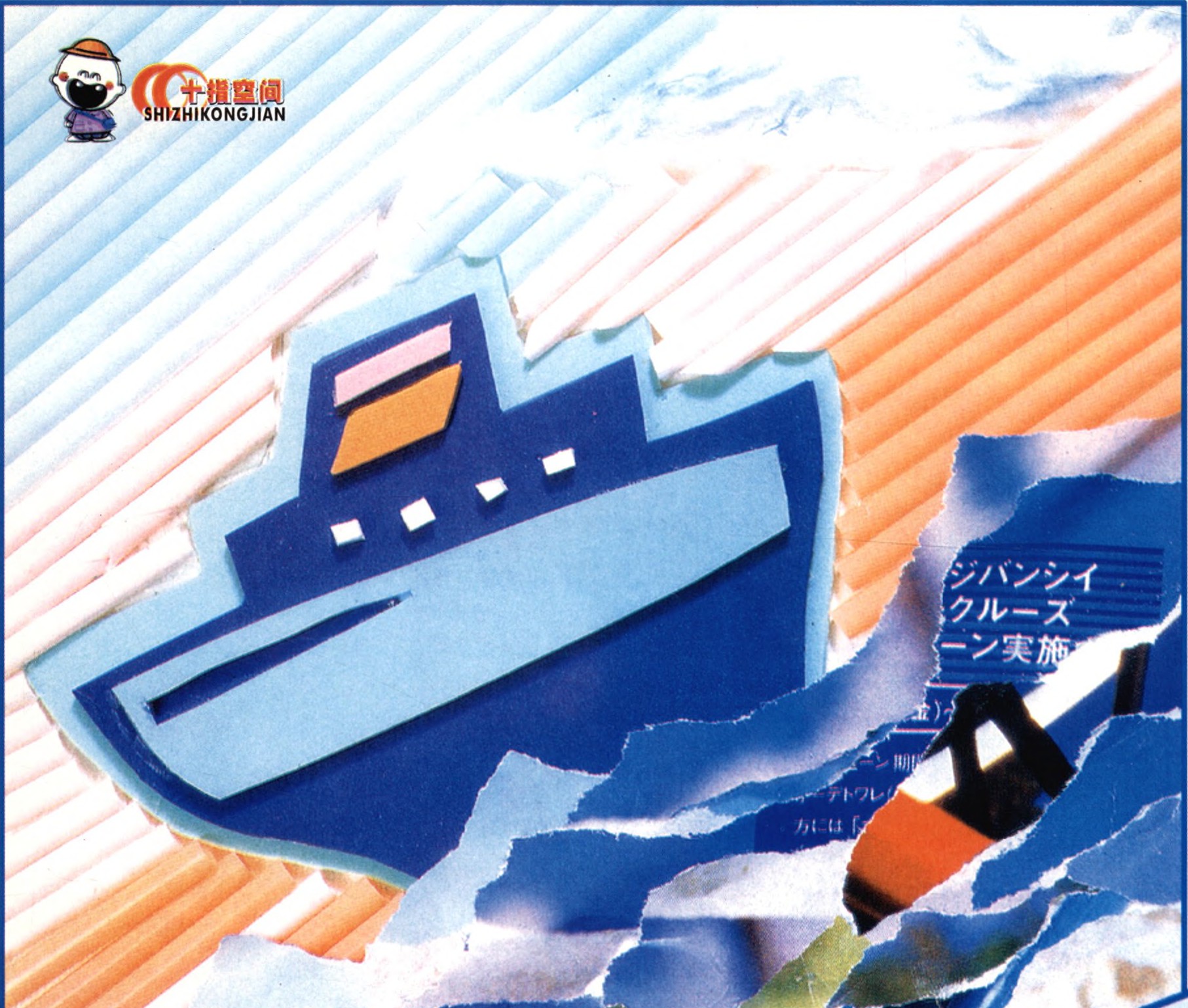 从杂志上剪下有白色、蓝色的杂志图片,有技巧地撕下所要的部分当作海浪,也有不错的效果喔!