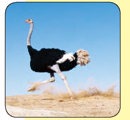 鸵鸟是世界上最大的鸟,身高约2.5米,体重150千克。它的两翼已经退化,不能飞翔。但是鸵鸟的下肢特别粗壮发达,这让它在沙漠里的奔跑时速可达40千米。