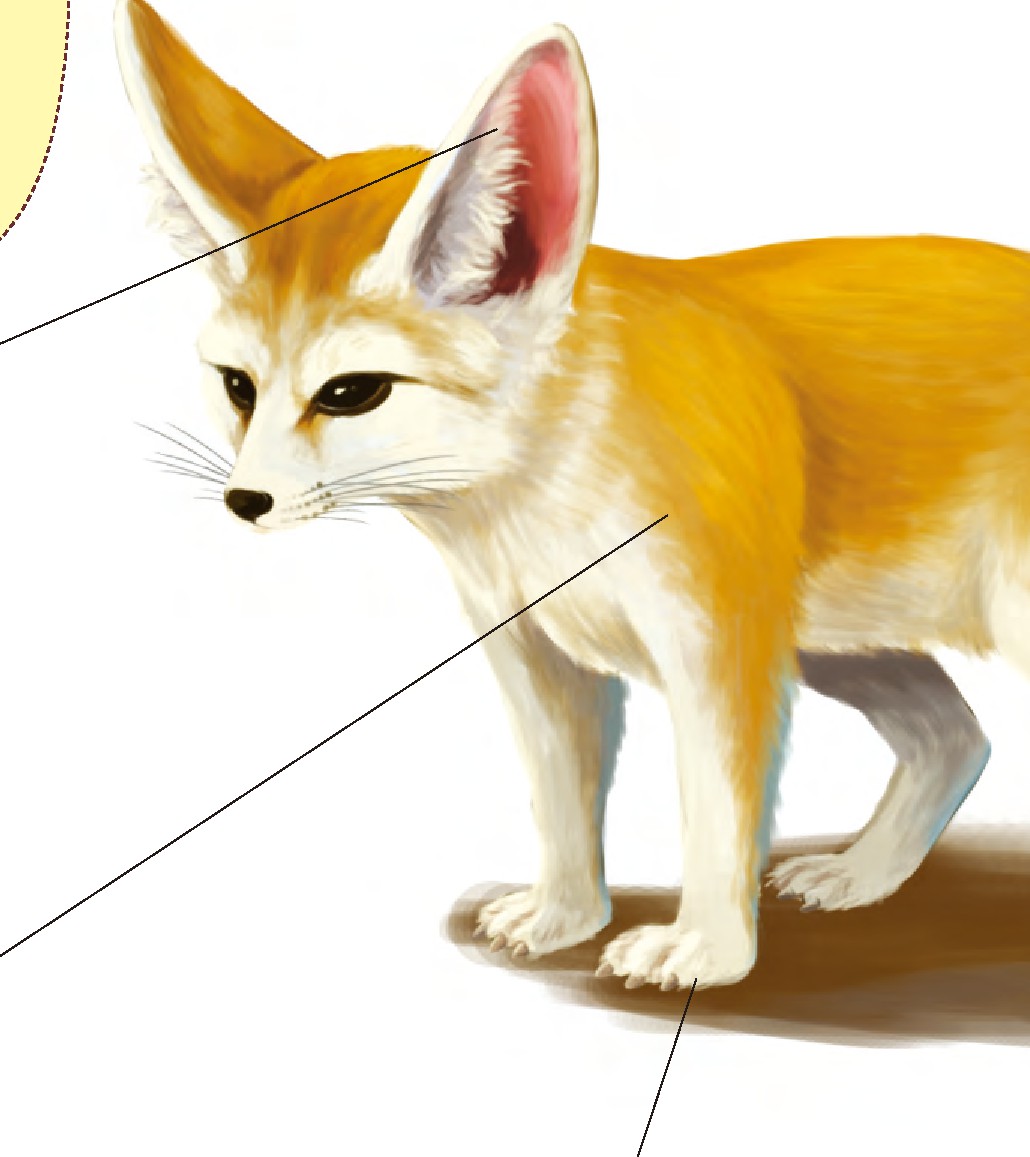 小时候,我的皮毛几乎是全白色。现在我长大了,这层厚厚的皮毛就变成淡黄色的了,更有利于我在沙漠中进行伪装。