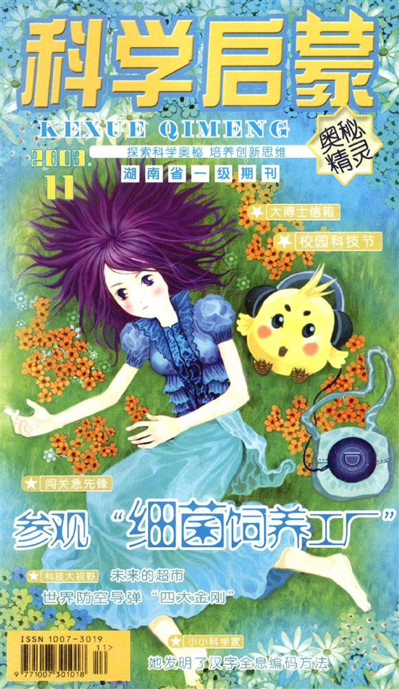 由湖南师范大学出版社主办的儿童类科普类期刊。通过丰富多彩的图画,简洁的语言向小读者讲解通俗易懂的科学知识,将孩子们引入奇妙的科学世界。以推动素质教育为目的,促进青少年科技人才的成长和提高;提高广大青少年的科学文化素质,增强科技意识;宣传科学思想、科学精神、科学方法,介绍适合青少年读者的科技知识;引导青少年读者“探索科学奥秘,培养创新思维”,推动青少年科技创新活动;引导青少年读者“科学地想像”,“展开想像翅膀,领略科幻神奇”,培养他们的创新意识和科学精神。