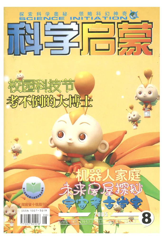 由湖南师范大学出版社主办的儿童类科普类期刊。通过丰富多彩的图画,简洁的语言向小读者讲解通俗易懂的科学知识,将孩子们引入奇妙的科学世界。以推动素质教育为目的,促进青少年科技人才的成长和提高;提高广大青少年的科学文化素质,增强科技意识;宣传科学思想、科学精神、科学方法,介绍适合青少年读者的科技知识;引导青少年读者“探索科学奥秘,培养创新思维”,推动青少年科技创新活动;引导青少年读者“科学地想像”,“展开想像翅膀,领略科幻神奇”,培养他们的创新意识和科学精神。