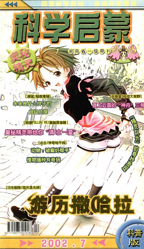 由湖南师范大学出版社主办的儿童类科普类期刊。通过丰富多彩的图画,简洁的语言向小读者讲解通俗易懂的科学知识,将孩子们引入奇妙的科学世界。以推动素质教育为目的,促进青少年科技人才的成长和提高;提高广大青少年的科学文化素质,增强科技意识;宣传科学思想、科学精神、科学方法,介绍适合青少年读者的科技知识;引导青少年读者“探索科学奥秘,培养创新思维”,推动青少年科技创新活动;引导青少年读者“科学地想像”,“展开想像翅膀,领略科幻神奇”,培养他们的创新意识和科学精神。